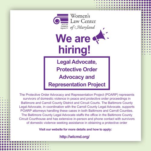 We are hiring! Baltimore County Legal Advocate, Protective Order Advocacy & Representation Project