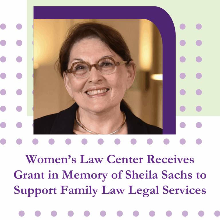 Women’s Law Center Receives Grant in Memory of Sheila Sachs to Support Family Law Legal Services